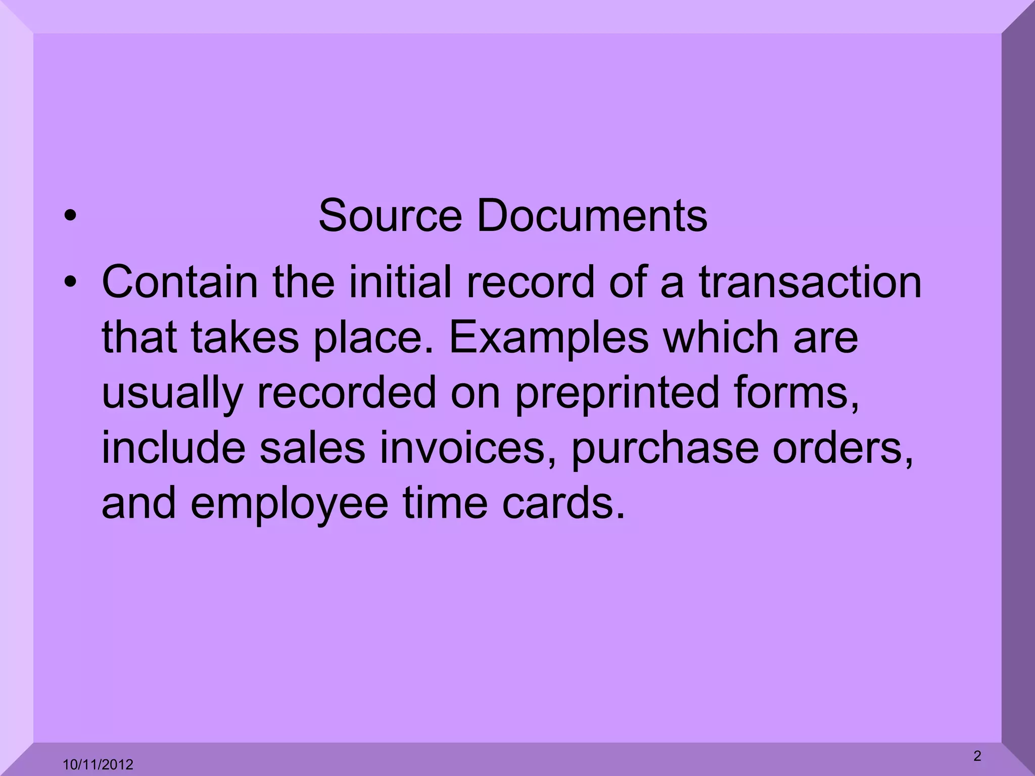 The data processing cycle has four stages: data input, data storage, data processing, and information output. Source documents contain initial records of transactions and are used as input. Turnaround documents facilitate subsequent processing of data exchanged with external parties. Source data automation collects transaction data in machine-readable form.