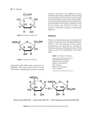 This document discusses molasses as a feedstock for alcohol production. It begins by explaining that molasses differs from other feedstocks like corn or potatoes in that its carbohydrates are already in the form of sugars and do not need to be broken down. It then provides details on the basic sugar chemistry in molasses and the different types of molasses. The majority of the document focuses on describing the production and properties of blackstrap molasses, which is the type generally used for alcohol production. It concludes by discussing the economics and fermentation process involved in using blackstrap molasses to produce ethanol.