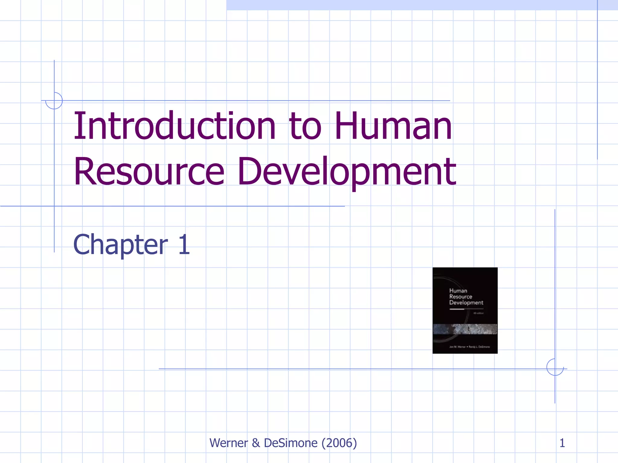 Human resource development (HRD) involves planned activities designed to provide organizational members with necessary skills. It evolved from apprenticeship programs, vocational education, and factory schools. HRD aims to develop employees through training, organizational development, and career development. Effective HRD follows a process of needs assessment, design, implementation, and evaluation.