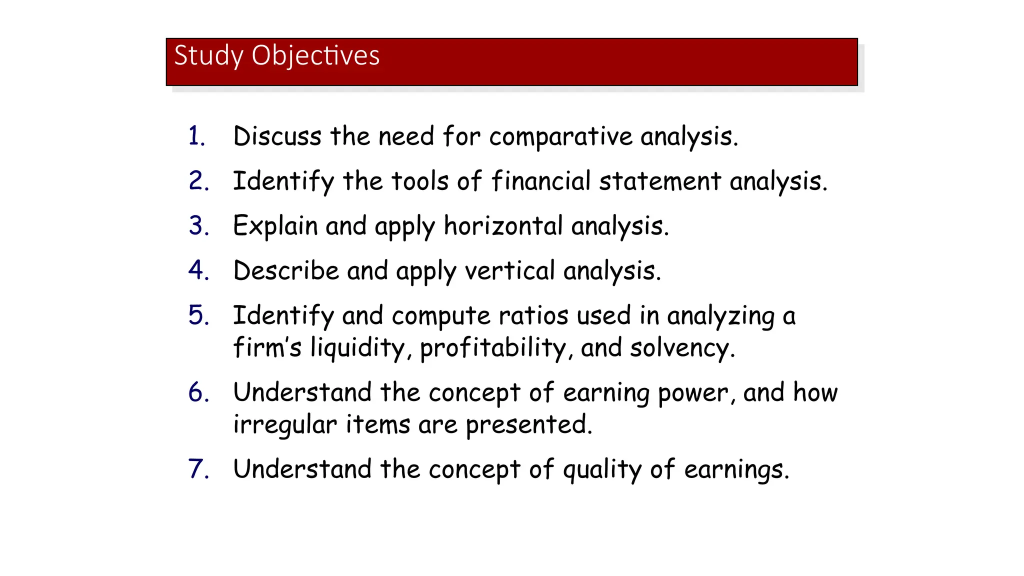 The document outlines the principles and tools of financial statement analysis, emphasizing the importance of comparative, horizontal, and vertical analyses, as well as ratio analysis to assess a firm's liquidity, profitability, and solvency. It explains key concepts such as earning power and the quality of earnings while identifying specific ratios used for evaluation, including the current ratio and profit margin. Additionally, it discusses the advantages and limitations of ratio analysis in providing insights into a company's financial health.