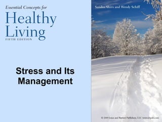 Stress can be caused by both physiological and psychological stressors. The body responds to stress through the release of stress hormones and physical adaptations. Prolonged stress can lead to exhaustion. Psychological responses to stress include feelings of depression, anxiety, frustration and irritability. Personality traits like optimism can act as a buffer against stress while traits like anger and hostility increase health risks like cardiovascular disease. Coping strategies like problem-focused coping, emotion-focused coping and social support can help manage stress.