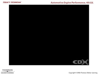 This document provides an overview of engine design and operation topics that will be covered in Chapter 3, including the four strokes of a four-stroke engine, compression ratio, camshaft and valvetrain components, cylinder bore and stroke, engine classifications, and the major components and functions of engine lubrication, cooling, and other systems. It lists learning objectives and introduces key terms and concepts to set up explanations that will be provided later in the chapter.