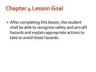 To safely perform their jobs, airport firefighters should be well-trained in using personal protective equipment. They should also be familiar with firefighter safety practices at emergency scenes, during responses, and at fire stations. ARFF personnel need knowledge of general aircraft hazards as well as specific dangers posed by different types of aircraft, military aircraft, cargo, and potential terrorist incidents. Proper identification and mitigation of hazards is important for their protection.