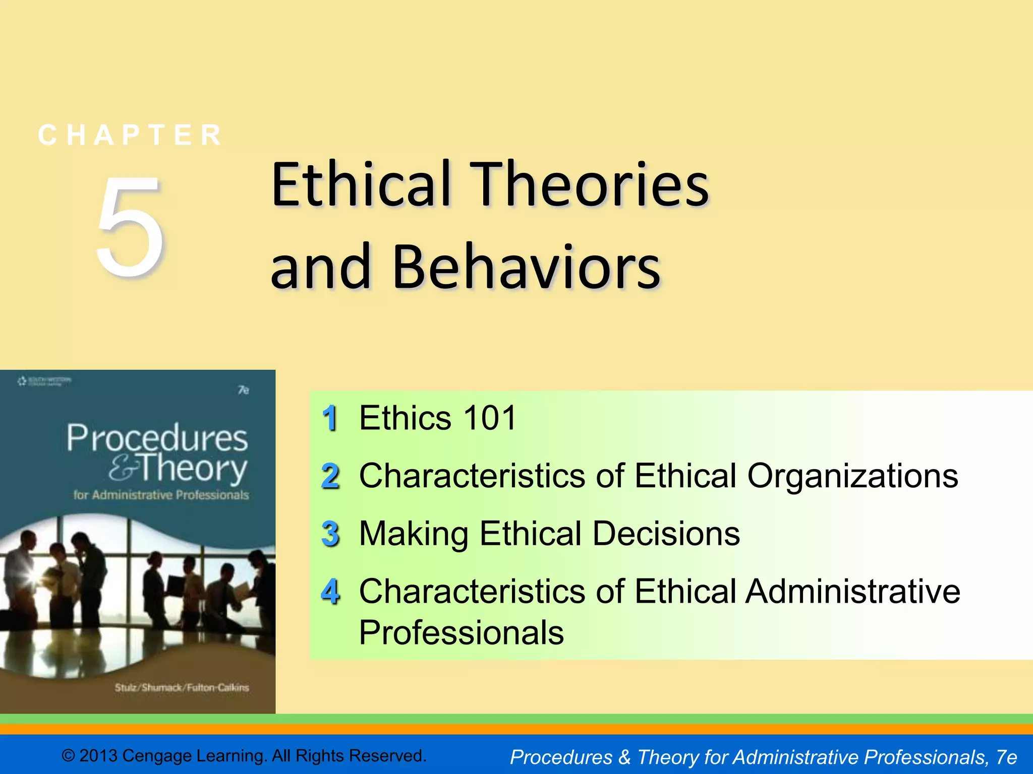 The document discusses ethics and ethical behavior in organizations. It defines ethics as standards that help determine right from wrong. Characteristics of ethical organizations include environmental responsibility, honesty, and commitment to diversity. The document outlines steps for making ethical decisions, including considering facts, stakeholders, perspectives, and actions. Ethical administrative professionals are committed to ethical behavior, refuse negative politics, and are trustworthy and honest.
