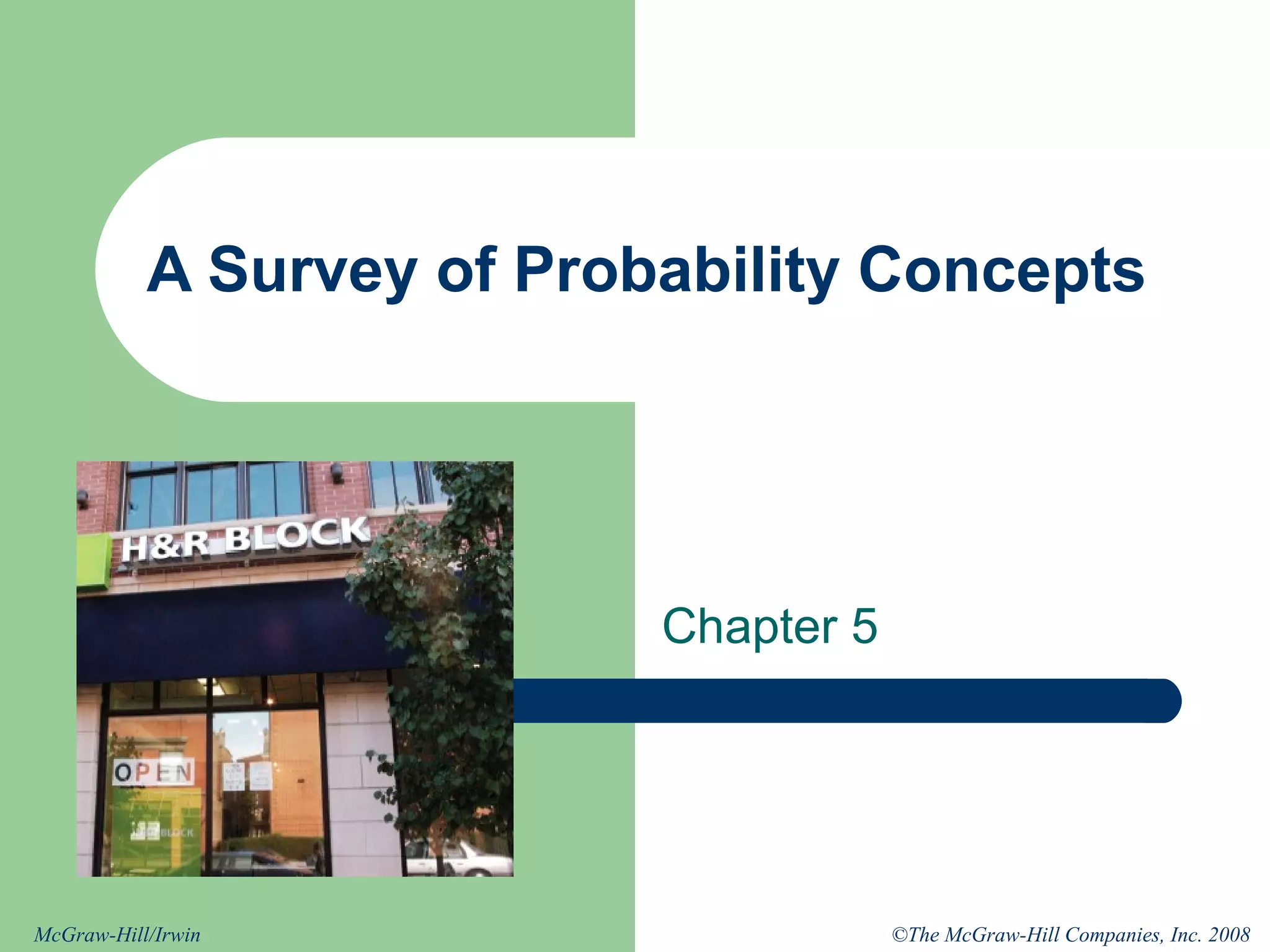 This chapter introduces key probability concepts including experiments, outcomes, events, classical, empirical and subjective probabilities, and rules for calculating probabilities. It defines probability as a measure between 0 and 1 of the likelihood of an event occurring. The three approaches to assigning probabilities are classical, empirical, and subjective. Classical probability uses equally likely outcomes and counting favorable outcomes. Empirical probability is based on observed frequencies over many trials. Subjective probability is used when there is little past data. Rules of addition and multiplication for probabilities are presented. Conditional probability and joint probability are also defined.
