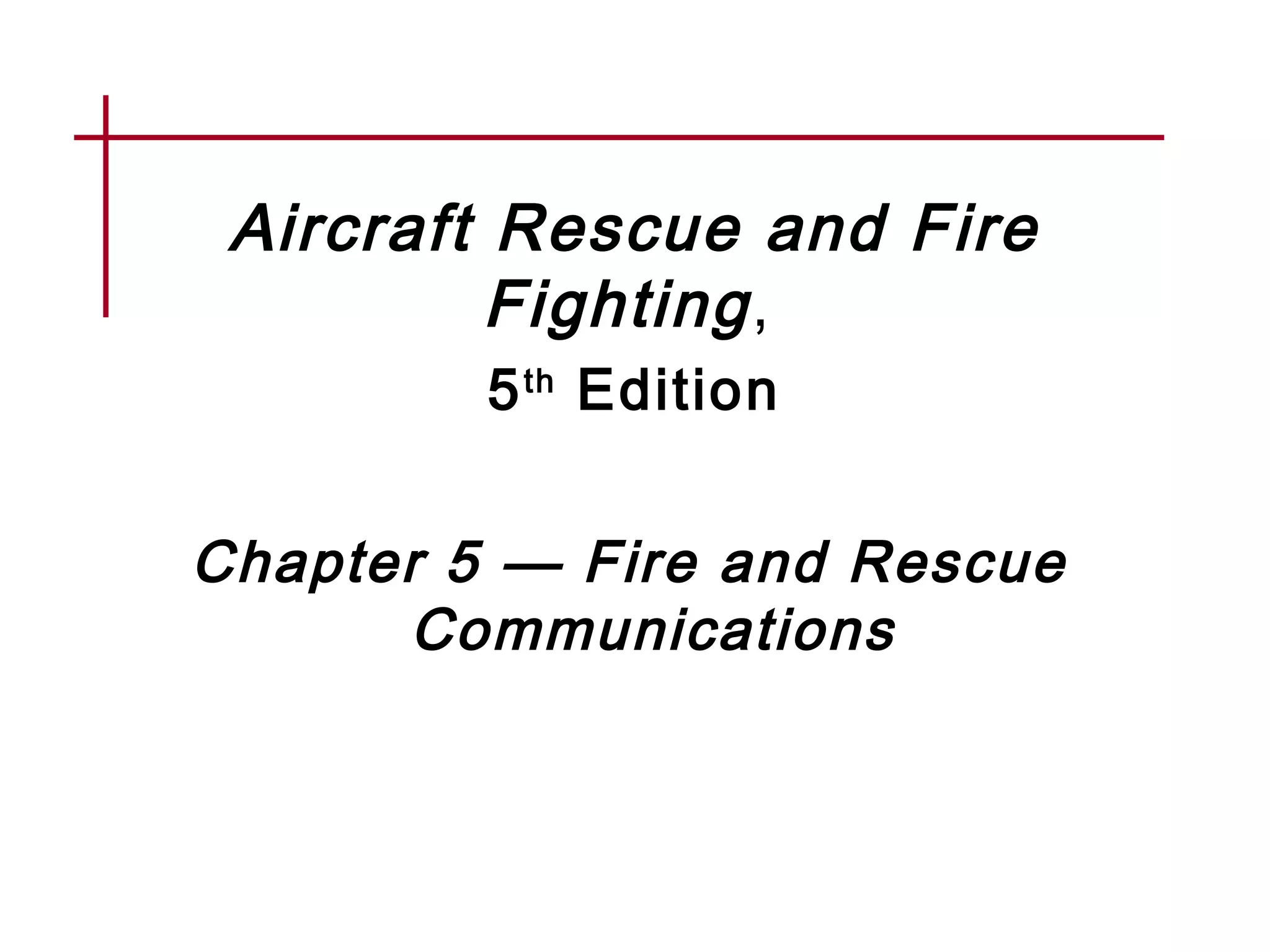 This chapter discusses communications systems and procedures used in aviation fire and rescue operations. It covers airport communication systems including audible alarms, direct-line phones, radio systems, and frequencies. Proper communication procedures and terminology such as the ICAO phonetic alphabet and aviation terms are presented. The chapter also discusses the use of computers, light signals, and hand signals in airport and aircraft rescue firefighting communications.