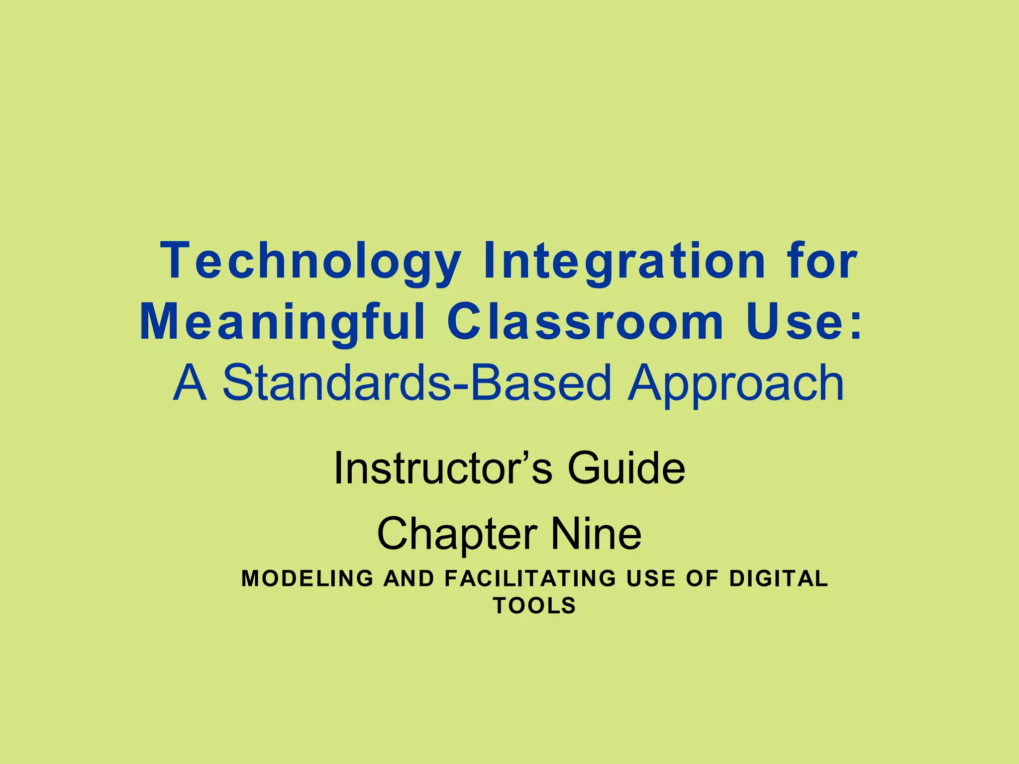 This chapter discusses how teachers can model and facilitate effective use of digital tools for communication, collaboration, and learning. It provides examples of how teachers can use tools like email, websites, presentation software, and podcasts to communicate with students, parents, and colleagues. The chapter also emphasizes the importance of creating a safe and healthy technology environment and modeling proper ergonomics and health practices when using technology.