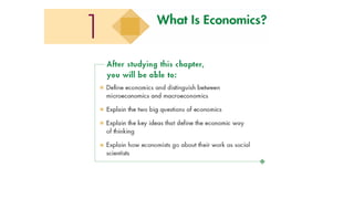This document provides an overview of graphing data in economics. It discusses three main types of graphs used - time-series graphs, cross-section graphs, and scatter diagrams. Time-series graphs show a variable over time, cross-section graphs compare variables across groups, and scatter diagrams show the relationship between two variables. The document also discusses key graph elements like axes, trends, slopes, and using graphs to understand relationships between multiple variables.