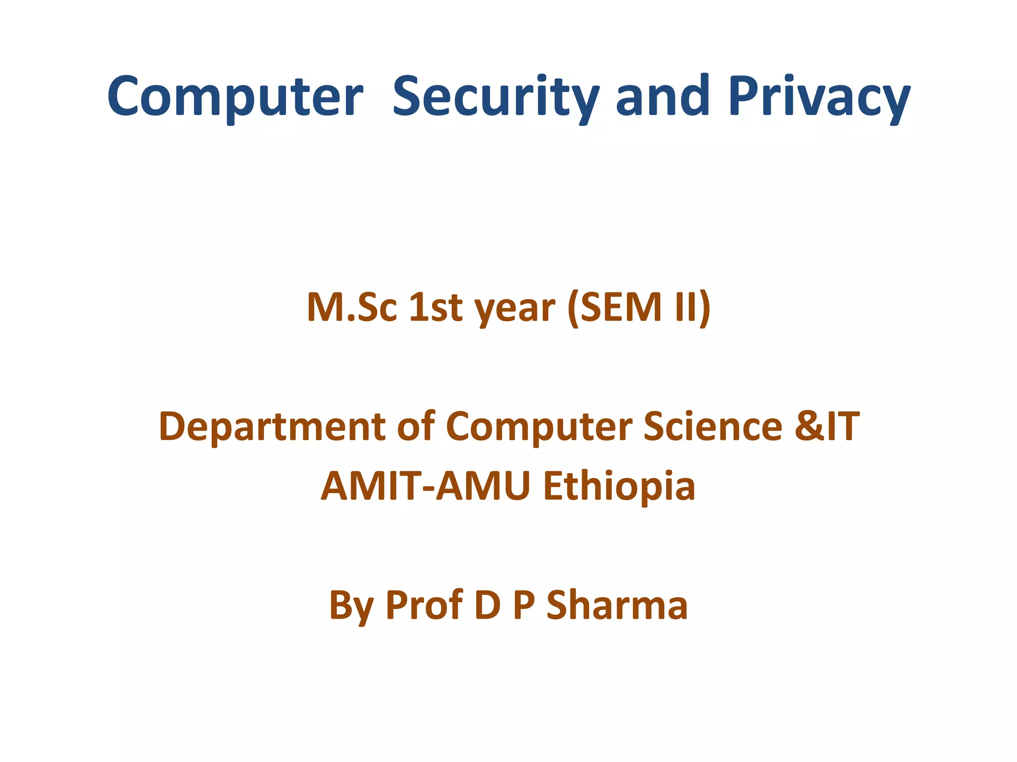 This document provides an overview of computer security and privacy. It begins with defining key terms like security, privacy, threats, and vulnerabilities. It then discusses the evolution of computer security, highlighting important early cases from the 1970s-1990s. The document outlines different types of computer security like security by design, secure operating systems, and secure coding. It also covers privacy issues and some salient computer security cases from Ethiopia and globally to demonstrate the history and importance of the topic.