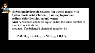3. Double displacement reactions involve the switching of ions between reactants to form new ionic compounds, exemplified by the reaction of barium chloride and sodium sulfate forming barium sulfate and sodium chloride.