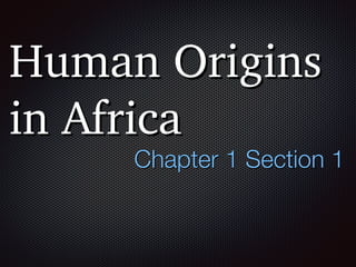 Early humans like Homo habilis and Homo erectus developed tools and migrated throughout Africa and Eurasia. As humans like Homo sapiens emerged around 200,000 years ago, they began controlling fire, domesticating animals, and developing language and art. Around 12,000 years ago, the Agricultural Revolution began as humans transitioned to farming and created permanent settlements, leading to population growth and the rise of early civilizations with advanced cities, specialized workers, complex institutions, record keeping, and technology.