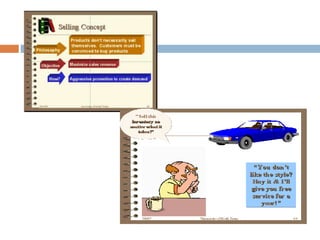- The distinction between marketing and selling, where marketing focuses on customer needs and selling focuses on product sales.