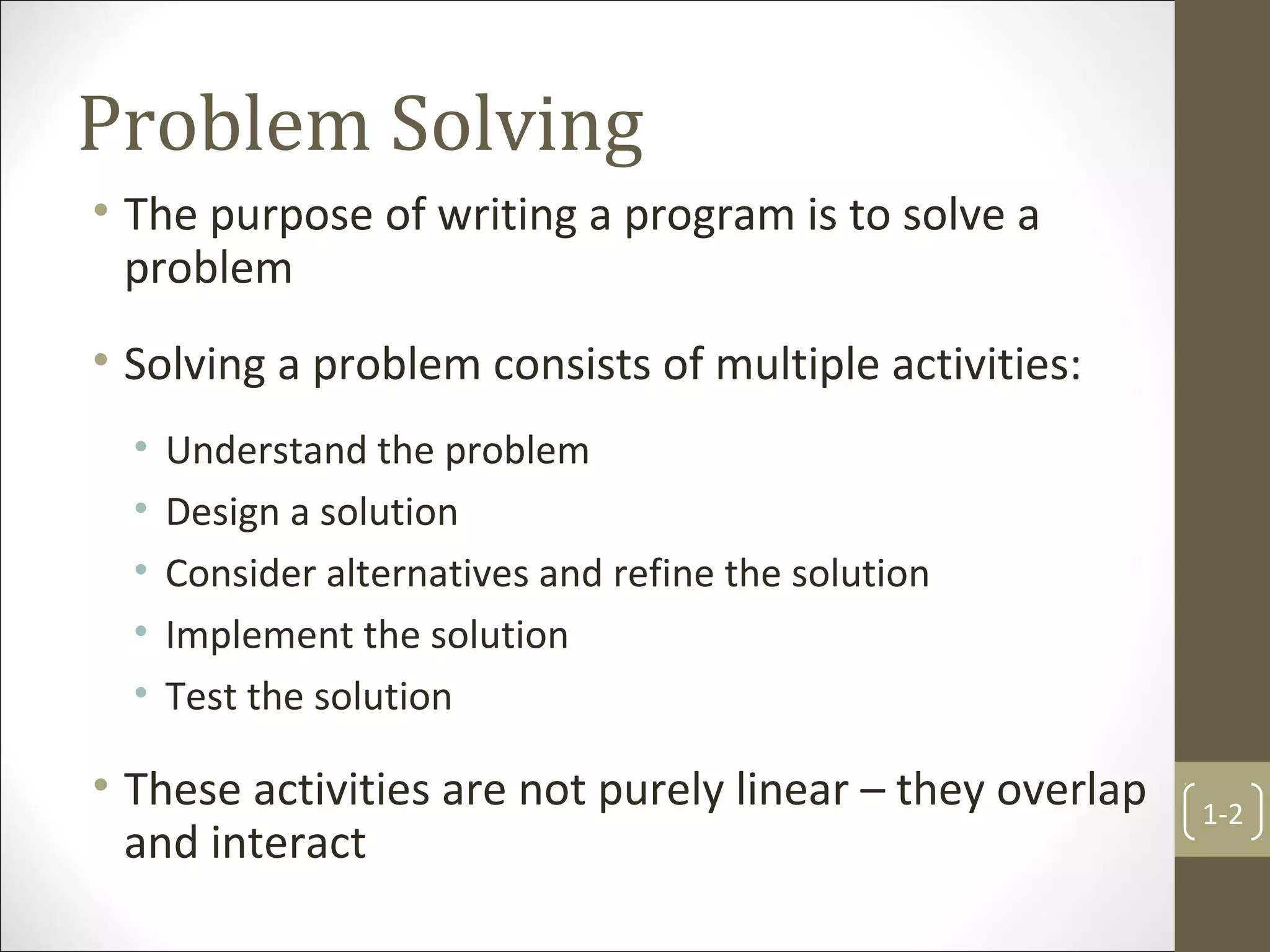 Chapter 1 introduces Object-Oriented Programming and the Java programming language, emphasizing problem-solving as a key process that involves understanding, designing, implementing, and testing solutions. It explains the concepts of objects and classes, and how Java allows the representation of real-world entities through these components. Additionally, it discusses Java's architecture-neutral nature, its development environment, and the structure of Java programs.