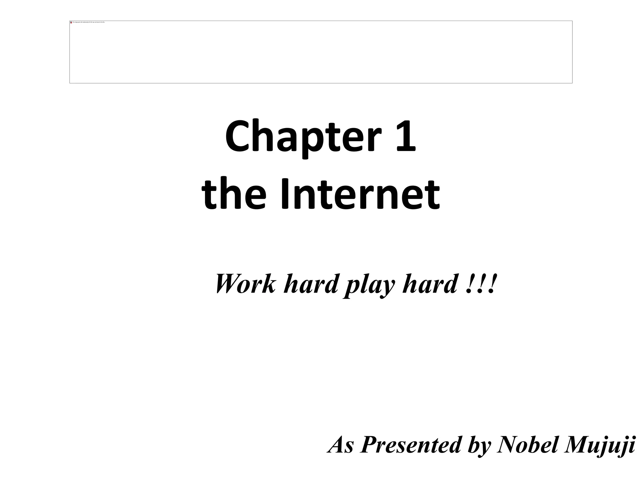 The document provides information about connecting to and using the internet. It defines key terms like Internet, World Wide Web, IP Address, domain name, and email. It explains that the Internet is a global network of interconnected computer networks that use TCP/IP, while the Web is software that allows accessing and sharing content over the Internet. It also discusses different types of internet connections like dial-up, DSL, cable, satellite, and mobile. The hardware and software needed to connect include a modem, router, network card, and web browser. It also covers topics like choosing an internet service provider, communication protocols, and an overview of email.