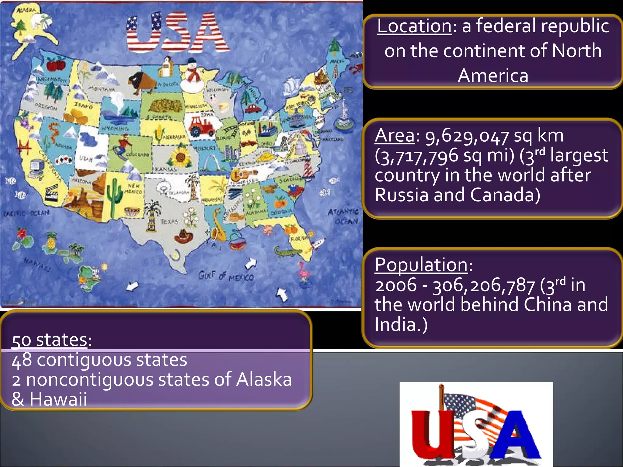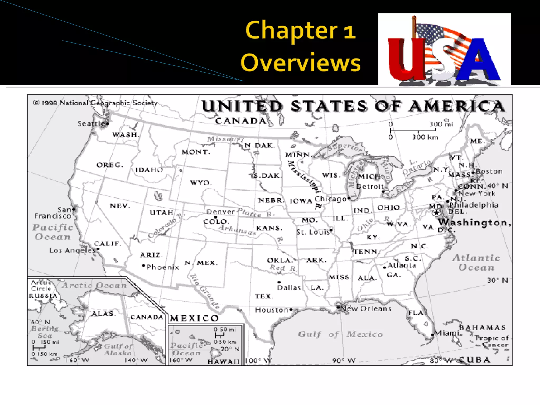 The document provides a historical overview of the United States, beginning with early colonial settlements in the 1600s and the American Revolution. It then discusses the formation of the US government, the Civil War, periods of westward expansion and industrialization, and the country's involvement in World Wars I and II. The summary concludes with a brief mention of the Cold War and recent US conflicts in Afghanistan and Iraq.