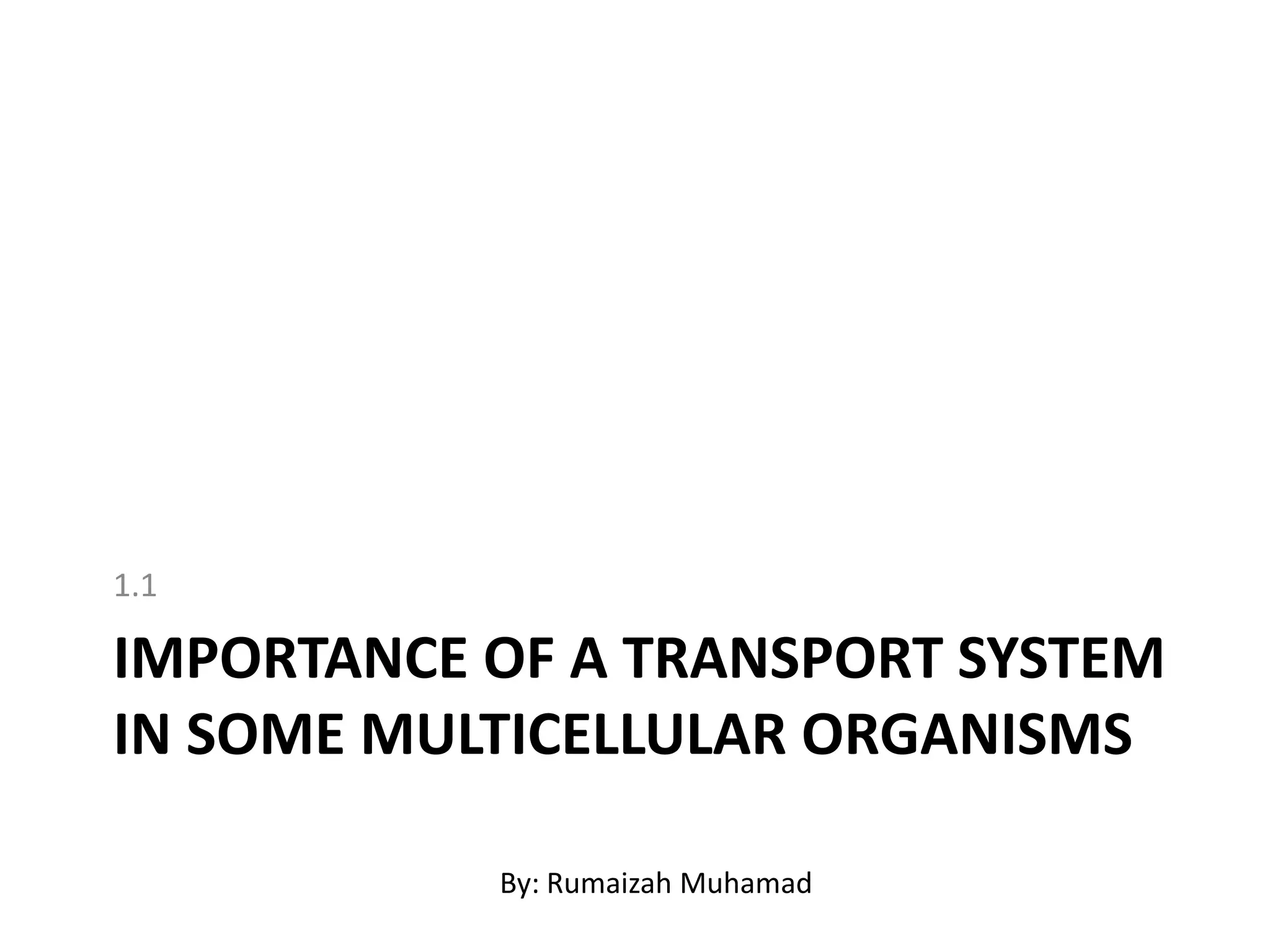 This document discusses the importance of transport systems in multicellular organisms, focusing on the circulatory system in humans and animals, including its components like blood and blood vessels. It details the functions and types of blood cells, the heart's role in circulation, and the mechanisms of blood clotting. Additionally, it compares different types of circulatory systems across species, emphasizing the significance of efficient nutrient and gas transport.
