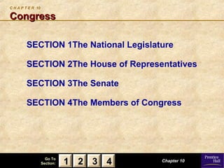 The document discusses the roles and responsibilities of members of Congress. It provides background on the 107th Congress, noting the typical age, education level, and occupations of its members. It also outlines the main duties of Congress, which include making laws, overseeing the executive branch, and representing constituents. Members of Congress are compensated with a salary and have access to certain privileges. They may see their roles as trustees of the people, delegates of their constituents, partisans of their political party, or politicos who combine elements of these approaches.