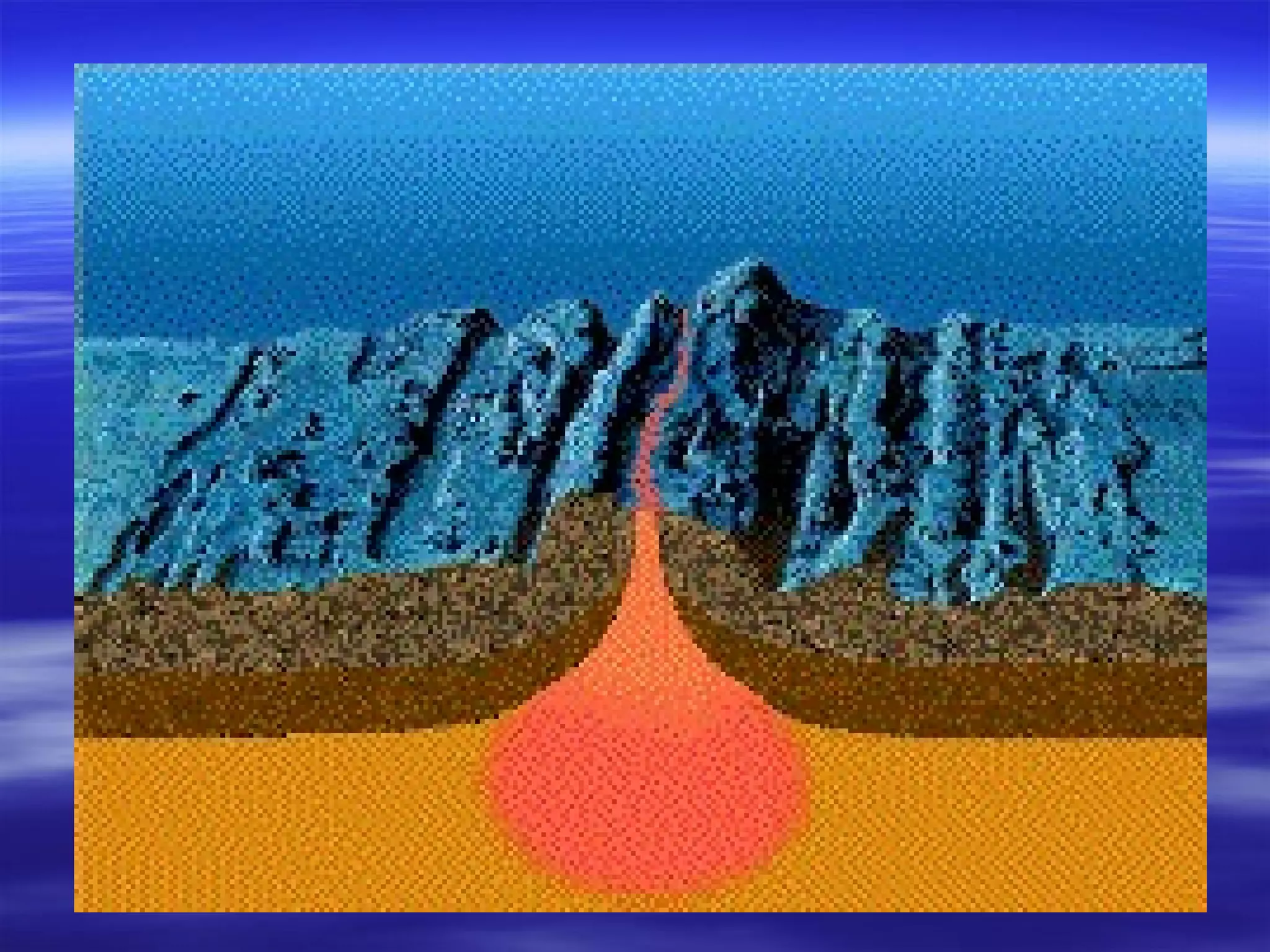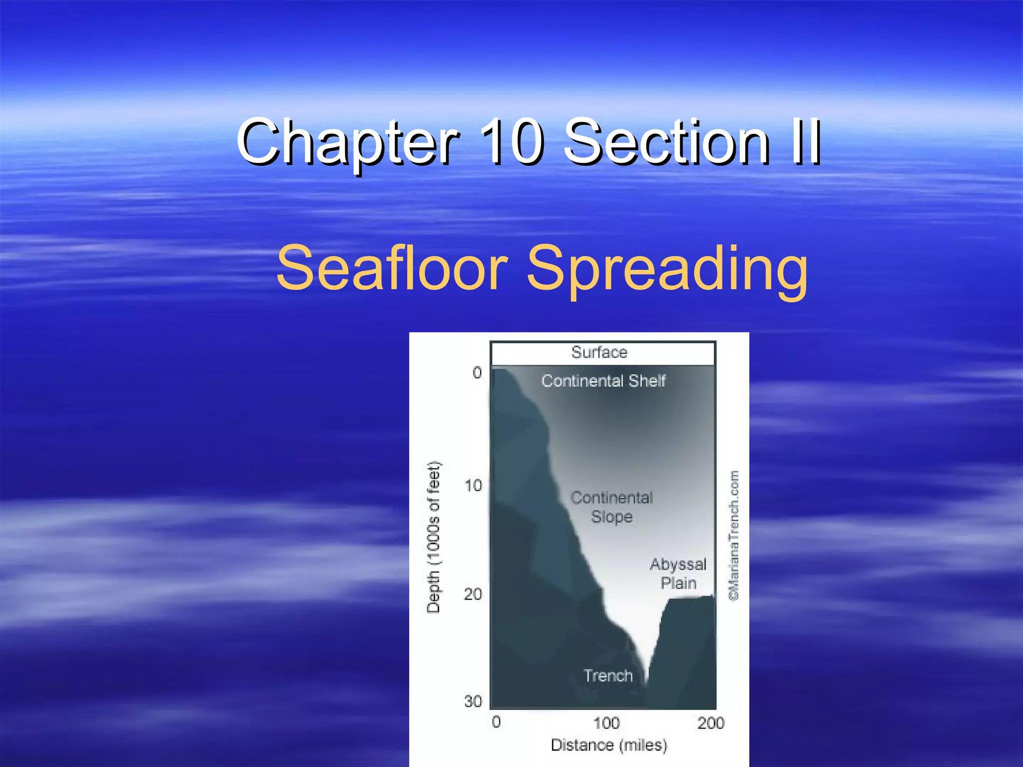2) Seafloor spreading involves hot material rising at ridges and flowing sideways, carrying the seafloor away as new material cools and forms at the cracks.