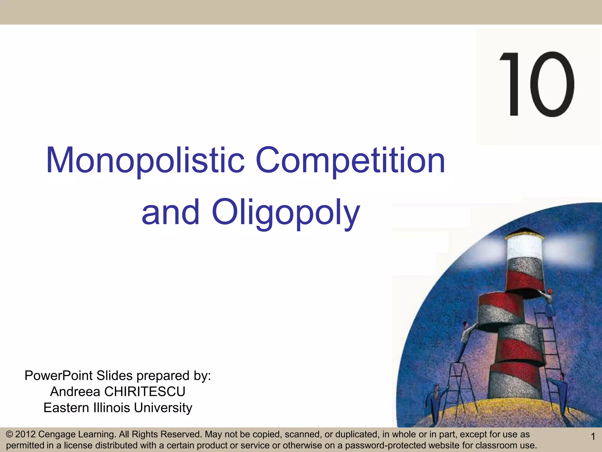 This document contains PowerPoint slides about monopolistic competition and oligopoly. Some key points: