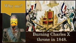 The document summarizes the revolutions that occurred across Europe in the 1830s and 1848. In the 1830s, revolutions broke out in France, Belgium, Poland, and Italy driven by liberalism and nationalism. These revolutions were only partially successful. By 1848, economic hardship and calls for further political reforms led to more widespread revolutions across Europe including in France, Germany, the Austrian Empire, and Italy. However, these revolutions ultimately failed as conservative forces were able to reassert control in most countries.