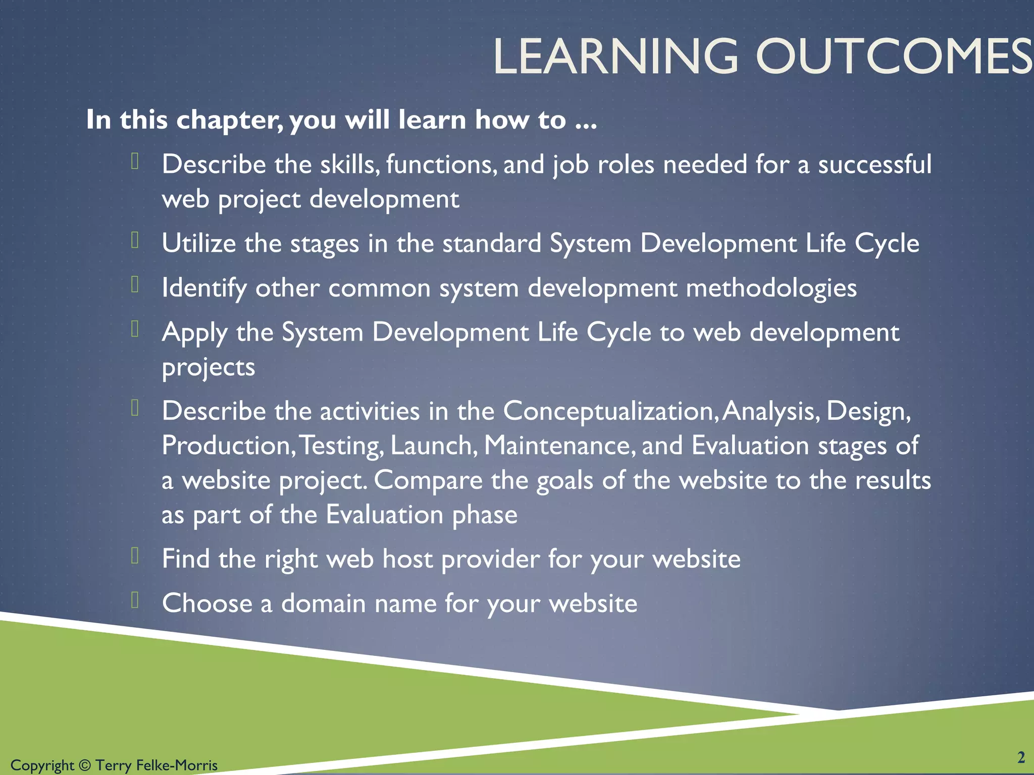 This chapter discusses web development projects. It describes the skills and job roles needed for successful small and large projects. These include project managers, designers, developers and more. It also outlines the system development life cycle process of conceptualization, analysis, design, production, testing, launch, maintenance and evaluation. Finally, it covers selecting a domain name and web host, like choosing a host that meets needs and has adequate support.