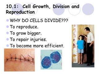 1. The main goal of cell division is to replicate the cell's DNA and divide it evenly between two daughter cells.