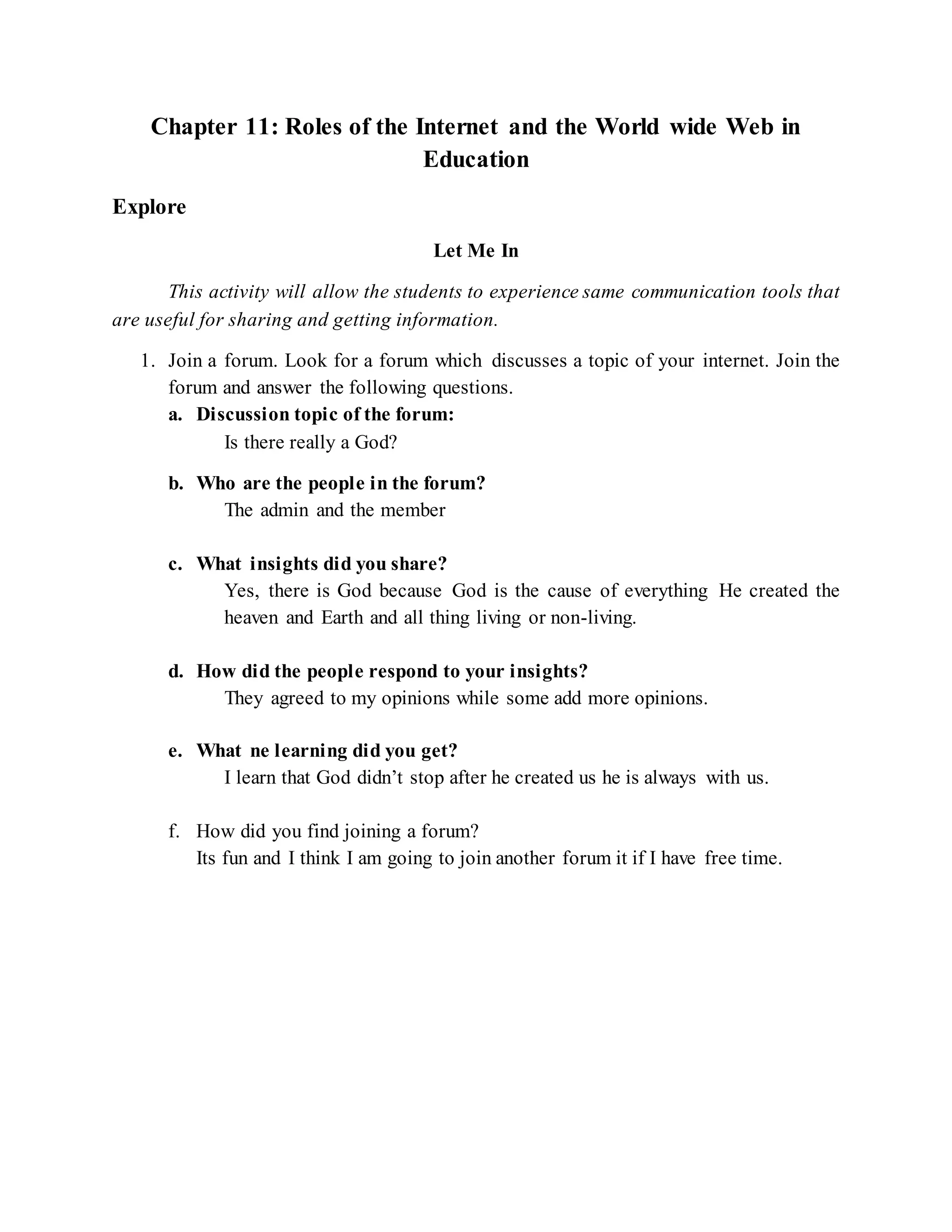 This document discusses the roles of the Internet and World Wide Web in education. It describes an activity where students will join an online forum or webinar to experience communication tools for sharing and obtaining information. The document provides guidelines for students to create a webquest or online activity using chosen topics. It involves registering on websites, following steps to create the activities, and sharing the URLs with instructors. Finally, the document discusses looking for apps or websites that can be used as communication and construction tools in education. Several apps and websites are described, along with their features and potential applications in the classroom.