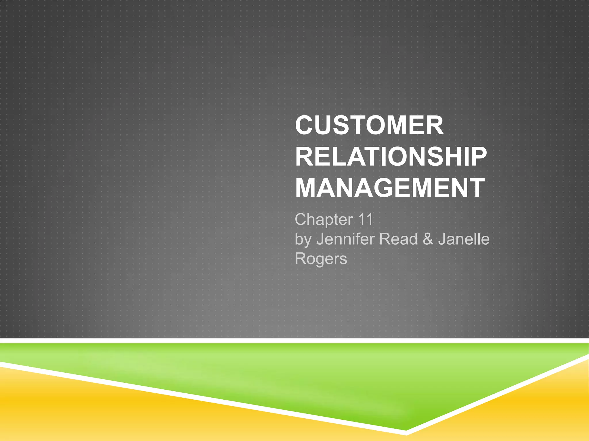 This document provides an overview of customer relationship management (CRM). It defines CRM as focusing on identifying and building loyalty with valued customers. The goal is to create a base of loyal customers and increase a retailer's share of wallet. Key aspects of CRM include collecting customer data, analyzing that data to identify the most profitable customers, and developing programs to retain customers and convert other customers into more profitable ones. The document outlines the CRM process cycle and discusses topics like customer privacy, developing loyalty programs, and dealing with unprofitable customers.