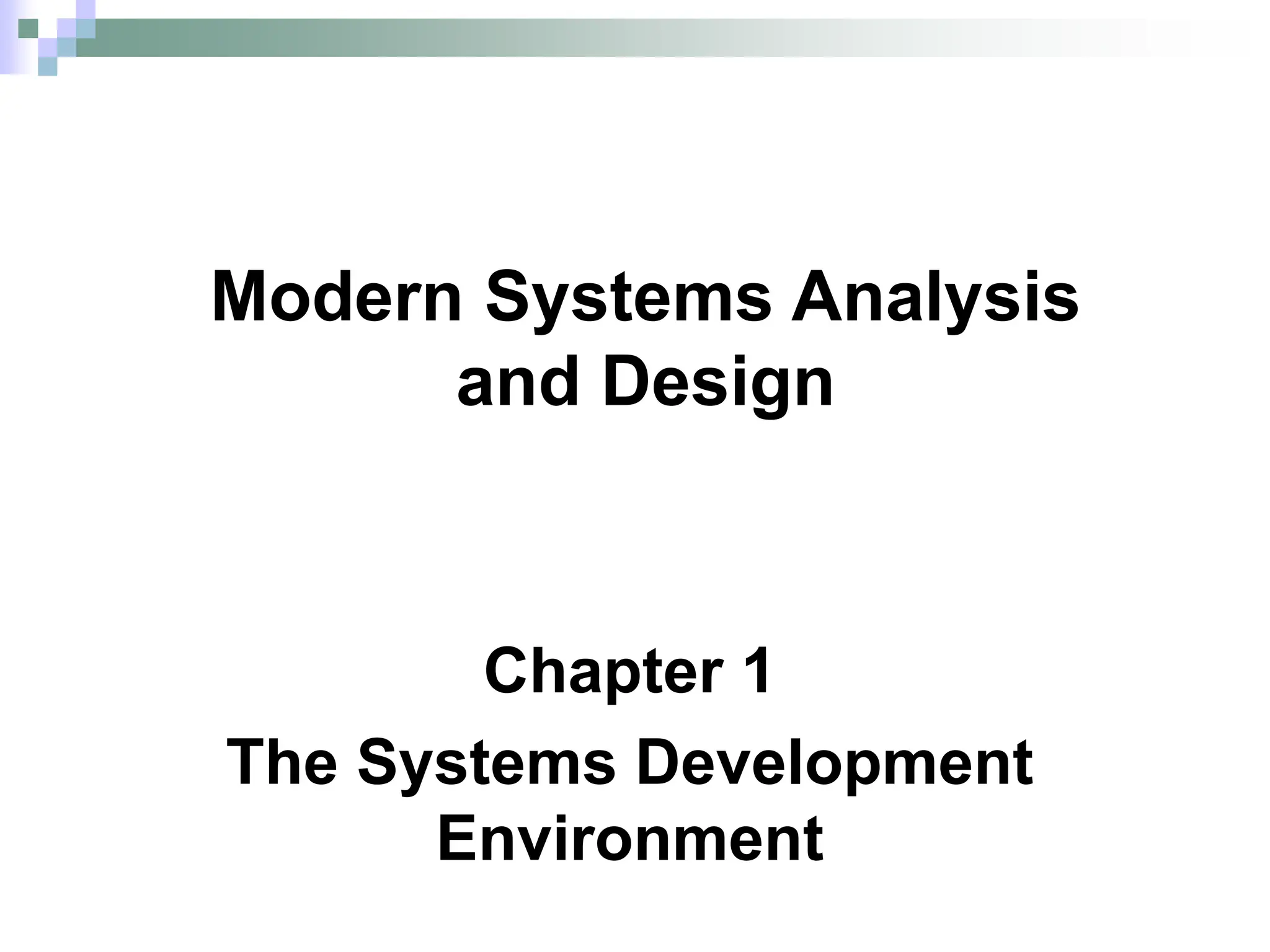 The document discusses the systems development environment, covering key concepts in information systems analysis and design, including the systems development life cycle (SDLC) and various methodologies such as agile and rapid application development (RAD). It outlines the historical evolution of system analysis from the 1950s to the present, highlighting significant technological advancements and the transition to modern methodologies. Additionally, it emphasizes the importance of user involvement and iterative processes in developing efficient and responsive information systems.
