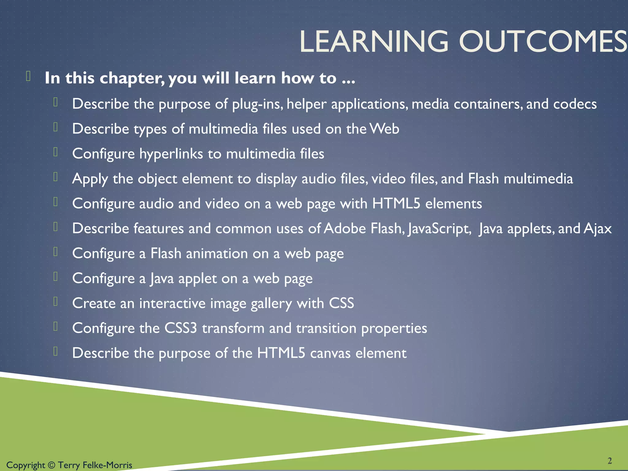 This document provides an overview of multimedia technologies for web development. It discusses plug-ins, helper applications, media containers and codecs. Common file types for audio and video are described. Methods for embedding multimedia like Flash, Java applets, audio and video are explained. CSS techniques for image galleries and transformations are covered. The document also discusses JavaScript, the Document Object Model and using the HTML5 canvas element.