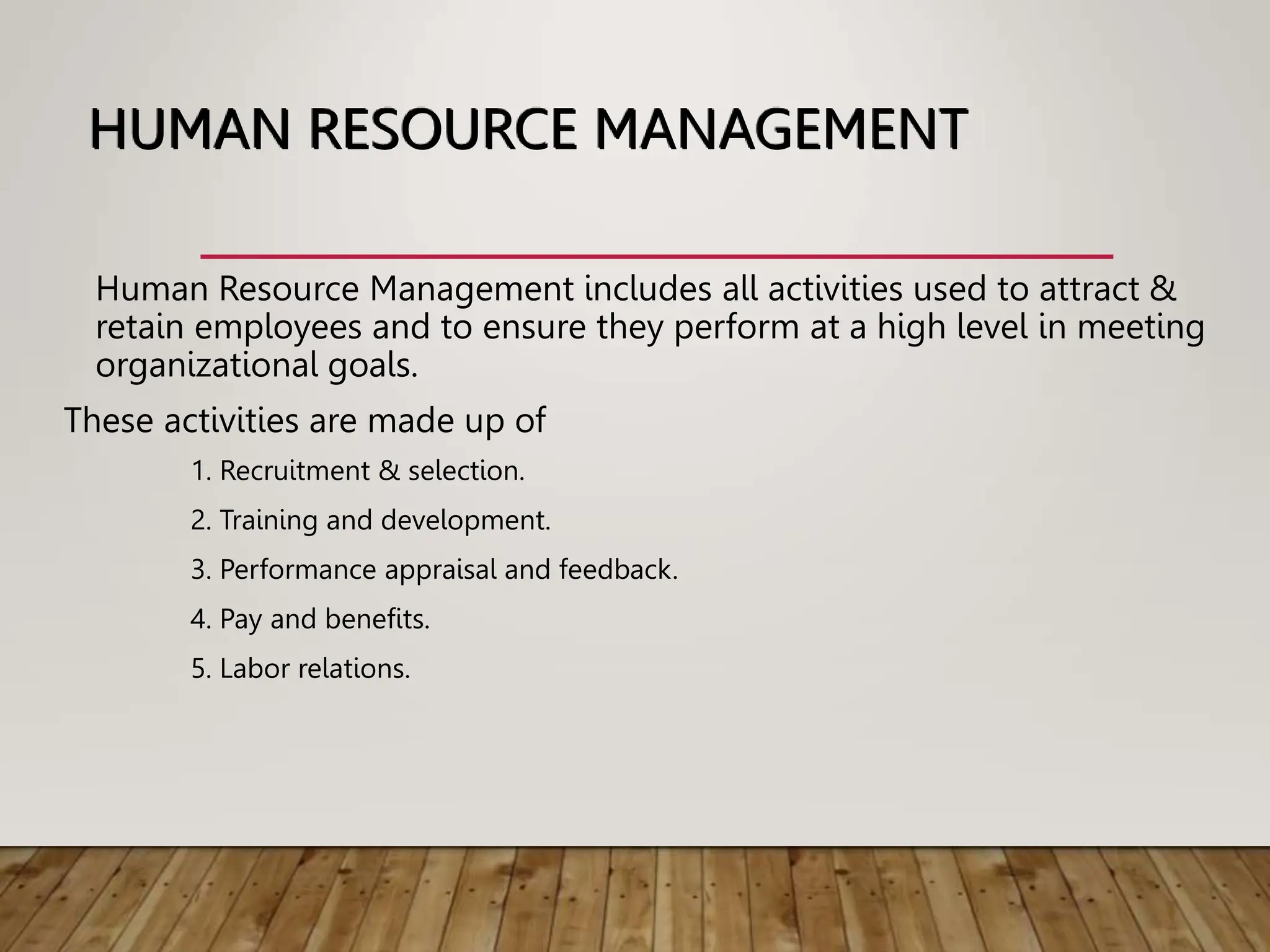 This document discusses key aspects of human resource management including planning, recruitment, selection, training, performance evaluation, compensation, and labor relations. It provides details on each of these areas and how they are interrelated. The overall purpose of human resource management is to attract, retain, and develop employees to meet organizational goals.