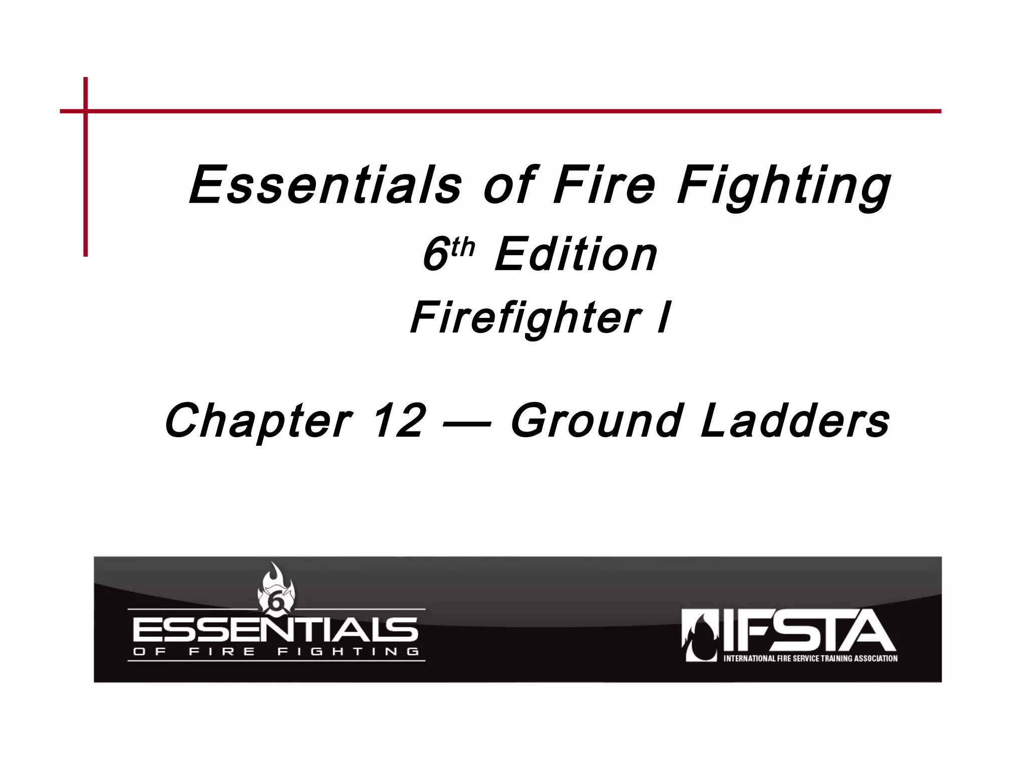 - The document discusses ground ladders used by firefighters, including different types of ladders, their parts, construction materials, inspection, maintenance, and proper techniques for carrying, raising, securing, climbing, working from, and assisting victims down ladders.