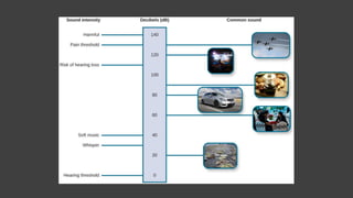 The document discusses the nature of sound, explaining that it is a form of energy produced by vibrating objects and that it requires a medium to propagate. It outlines how humans produce sound through their vocal cords and explores sound properties, including amplitude, frequency, and the difference between noise and music. Additionally, the document addresses noise pollution, its causes and effects on health, as well as potential prevention strategies.