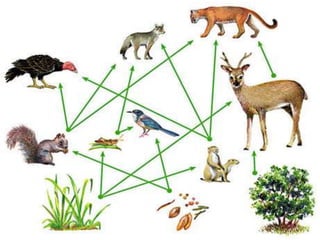 - Energy flows through ecosystems via food chains and is lost at each trophic level, while nutrients cycle through ecosystems via decomposition.