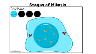 This document provides an overview of cell division, specifically mitosis and meiosis. It begins with definitions of the key types of cell division - amitosis, mitosis, and meiosis. It then covers the stages and processes of mitosis, including interphase and the four stages of mitosis (prophase, metaphase, anaphase, telophase). The document also discusses the cell cycle and DNA content during cell division. Meiosis is then introduced, focusing on its production of gametes and halving of chromosome number compared to mitosis.