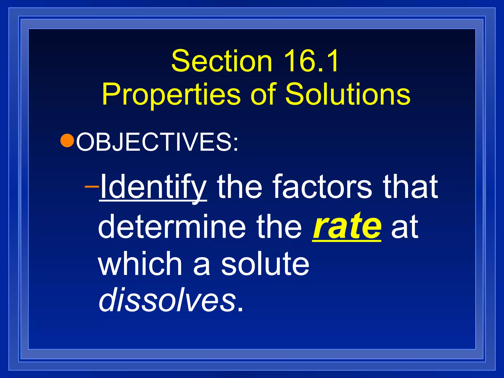 The document discusses key concepts about solutions, including: