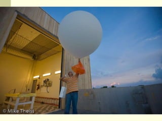 Meteorologists use various data sources to predict the weather, but it is difficult to always be correct due to rapidly changing atmospheric conditions. Data comes from surface weather stations, weather balloons, satellites, radars, and computer models. Air masses and fronts influence weather, and storms form when different air masses meet. Hurricanes require specific conditions like warm ocean water. While meteorology studies the atmosphere, tiny differences in data can lead to different model results, so multiple models are used to predict daily weather.