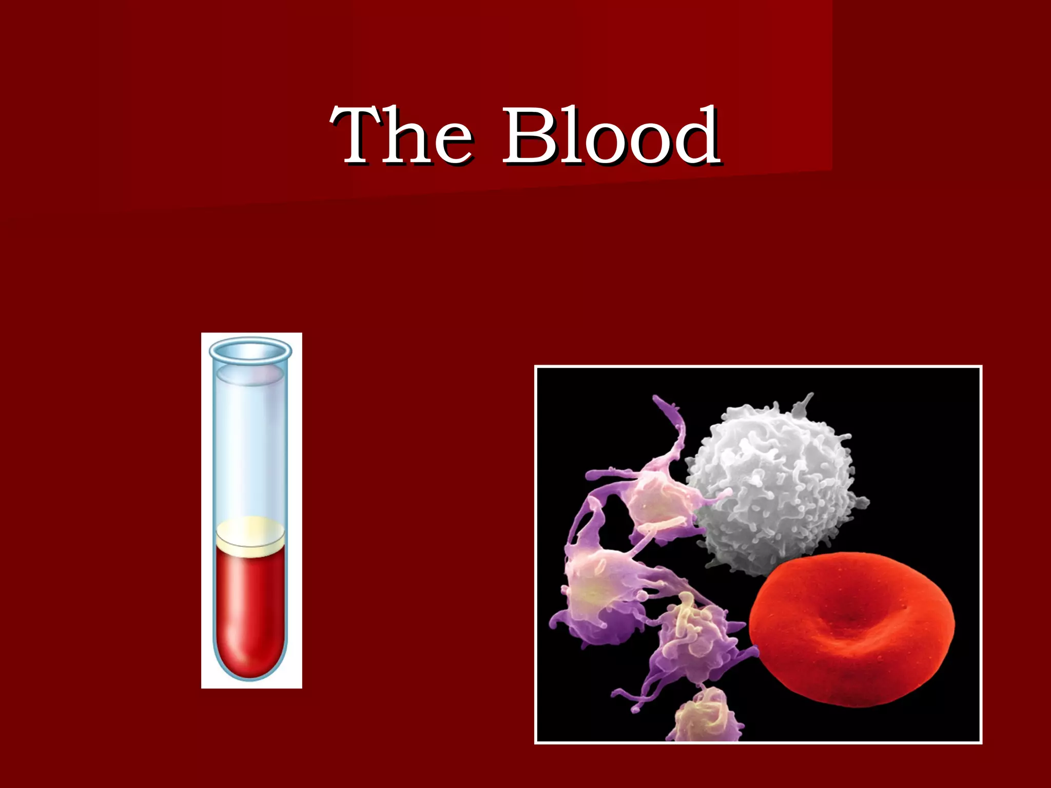 The document discusses the blood and its components. It states that blood contributes to homeostasis by transporting respiratory gases, nutrients, and hormones to and from cells. Blood also helps regulate pH and temperature, and provides protection through clotting and immune defenses. The document describes the constituents of blood including plasma and formed elements such as red blood cells, white blood cells, and platelets. It discusses hematopoiesis, the production of blood cells in the bone marrow, as well as abnormalities in erythropoiesis like anemia and polycythemia.