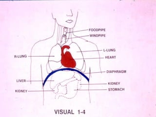 The document emphasizes the importance of first aid training for everyone to provide emergency care until professional medical help is available, ensuring the victim's safety and preserving their condition. It outlines the key principles and steps of first aid, including the immediate care of life-threatening injuries, promoting safety, and effective communication with the victim and bystanders. Additionally, it highlights the need for knowledge of anatomy and the sequence of first aid procedures to improve the chances of recovery.