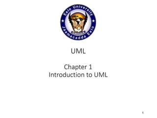 This document provides an introduction to the Unified Modeling Language (UML). It discusses that UML is a standardized modeling language used to model object-oriented software systems, combining previous modeling approaches. UML uses graphical diagrams to model different views of a system and has evolved over time, with its content controlled by the Object Management Group. The document outlines the history and goals of UML's development and provides an overview of the common diagram types used in UML modeling.
