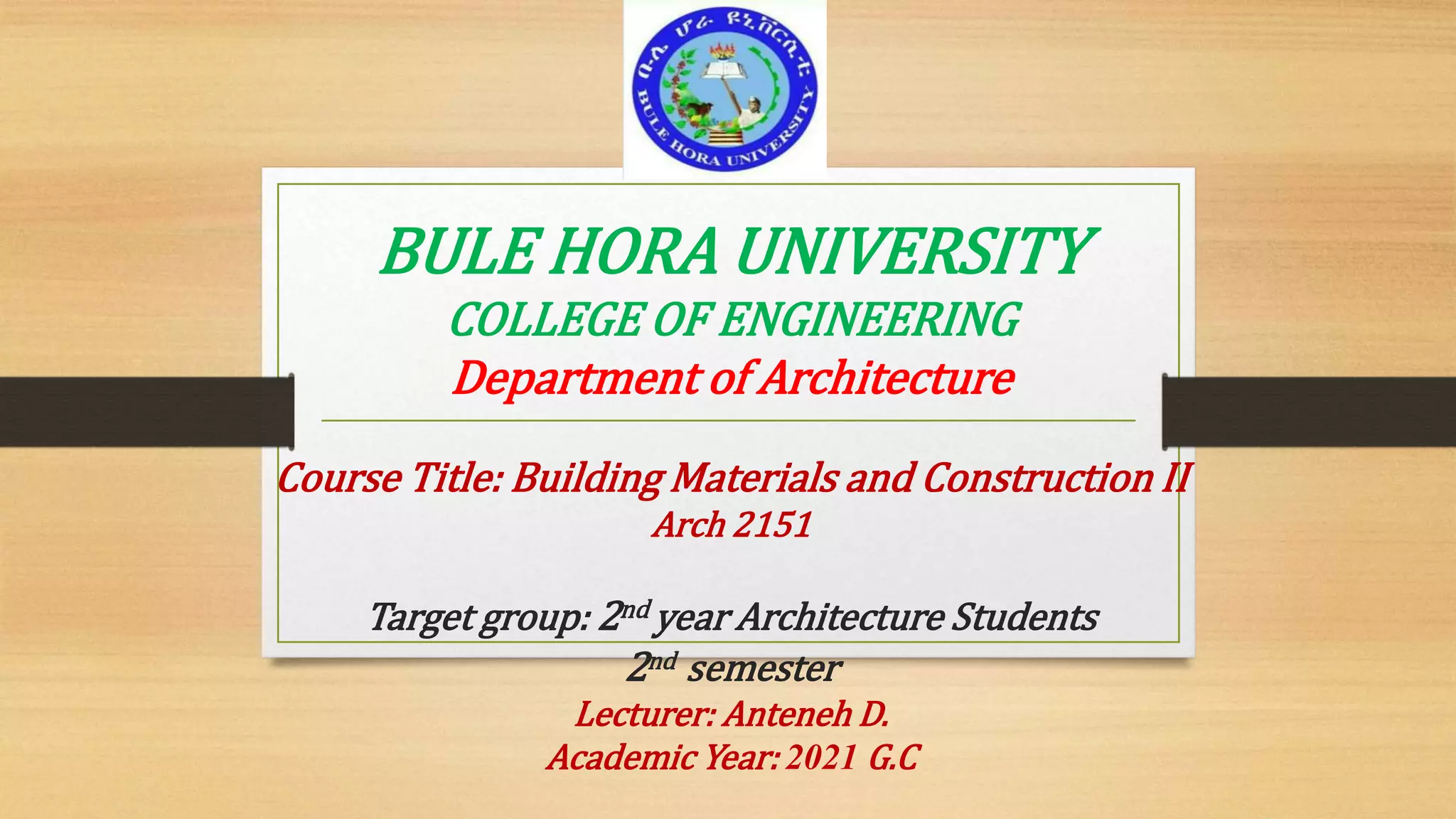 This document provides information about building materials and construction techniques using masonry, specifically stone and bricks. It discusses the classification, formation and requirements of different stone types commonly used in Ethiopia like basalt, trachyte and granite. It also outlines the manufacturing process for bricks from selecting raw materials to firing. Bricks are classified based on their usage and shape. The document discusses properties of good building stones and fired clay products along with factors affecting the quality of bricks.