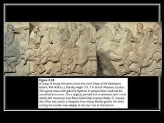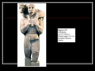 - The document provides an overview of ancient Greek and Roman civilizations, covering their philosophy, art, architecture, and other cultural achievements from around 1600 BCE to 500 CE.