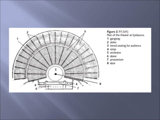 The document provides information on several aspects of ancient Greek civilization, including: