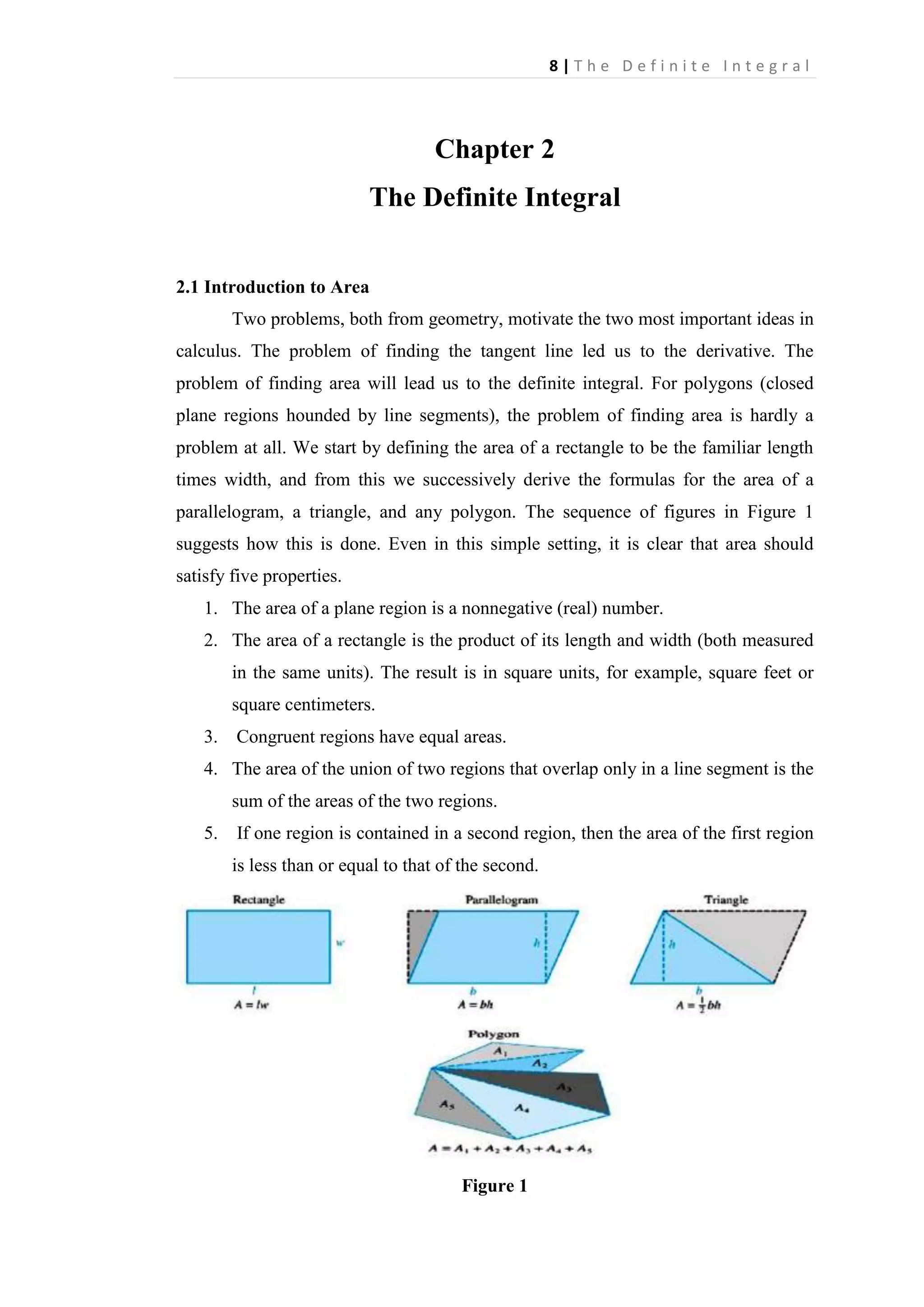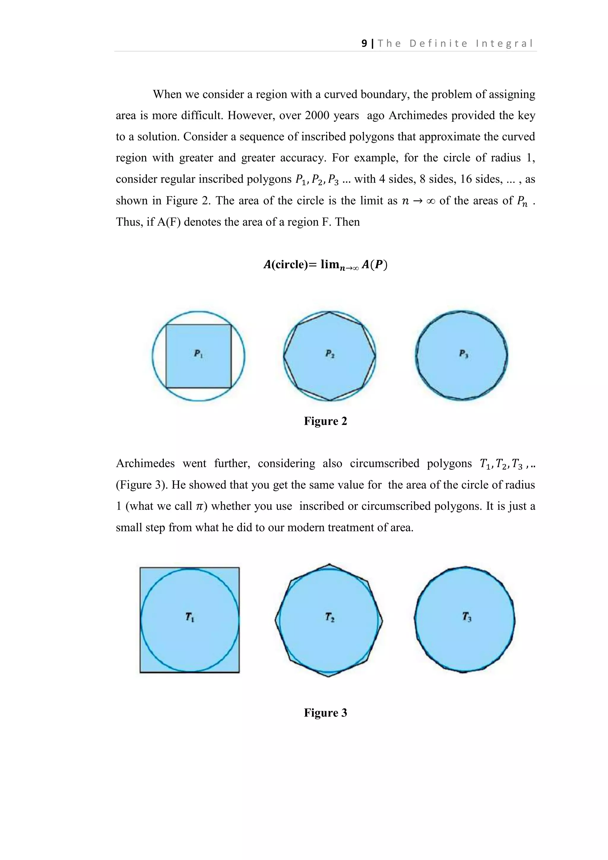The definite integral is defined as the limit of Riemann sums as the norm of the partition approaches 0. A Riemann sum is the sum of the areas of rectangles formed by the function over subintervals of its domain. The definite integral calculates the signed area between the function's graph and the x-axis over an interval. It generalizes the idea of finding the area under a curve to allow for functions that are negative, discontinuous, or unbounded over the interval.