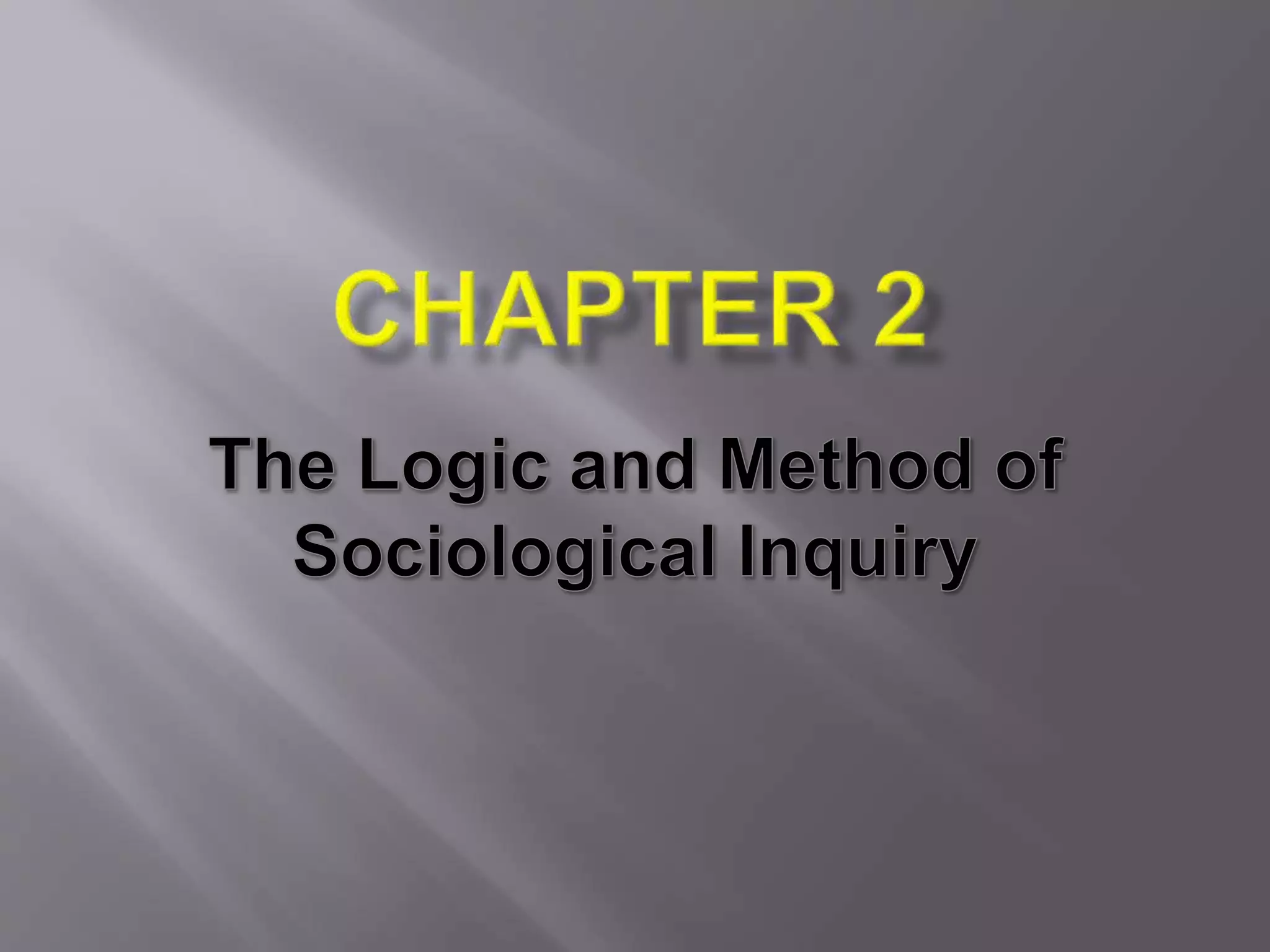 Sociological inquiry (SI) aims to provide understanding of the social world through exploration of human social and cultural conditions. SI publishes both theoretical and empirical work using varied research methods. SI follows certain procedures like defining problems, gathering and analyzing data, and verifying results. Commonly used methods include experiments, surveys, and case studies which may employ qualitative or quantitative techniques like observation, interviews, and questionnaires. The overall goal of SI is to obtain understanding of how social phenomena work and change over time and context.