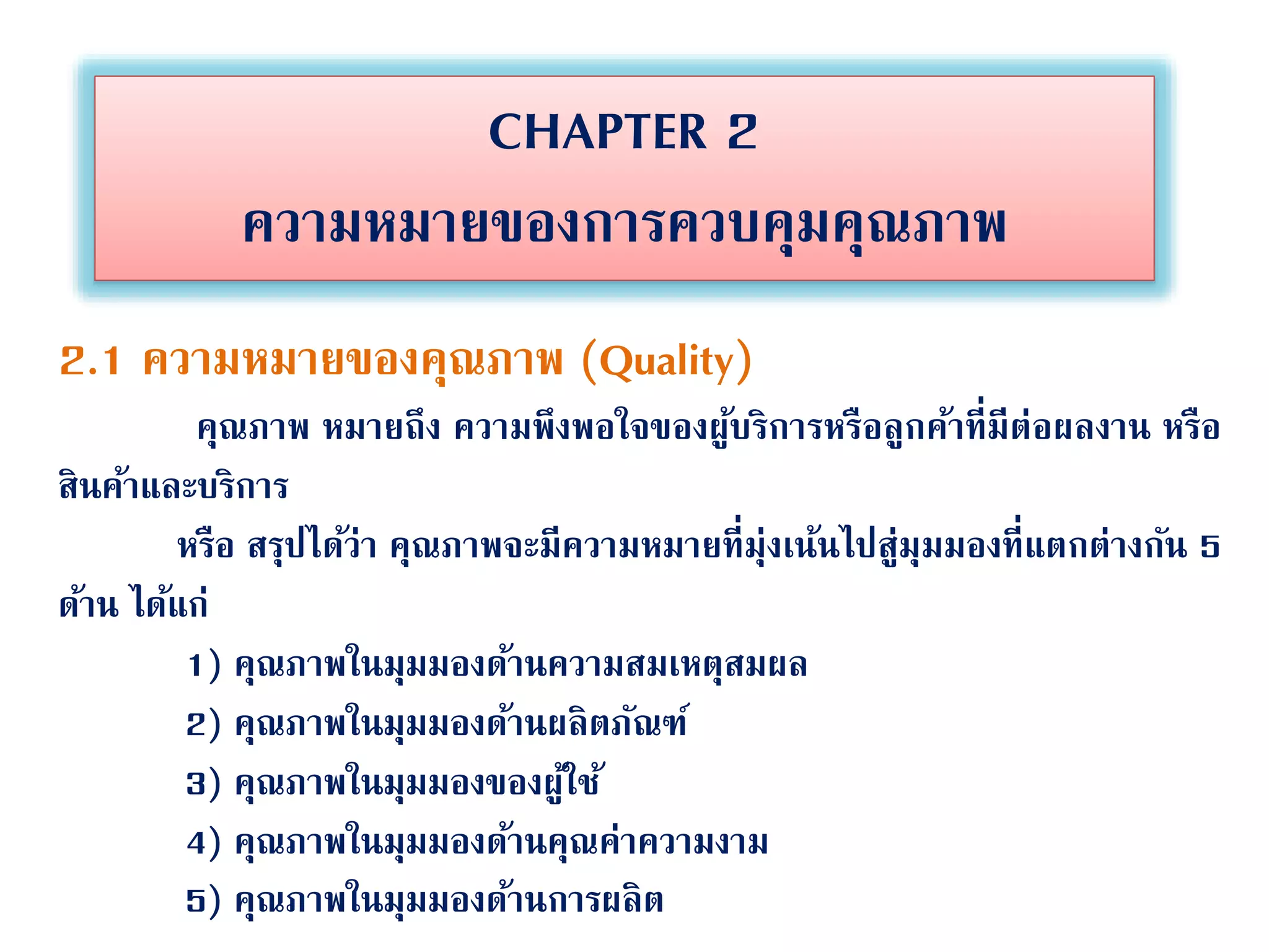 Chapter 2 ความหมายของการควบคุมคุณภาพ
