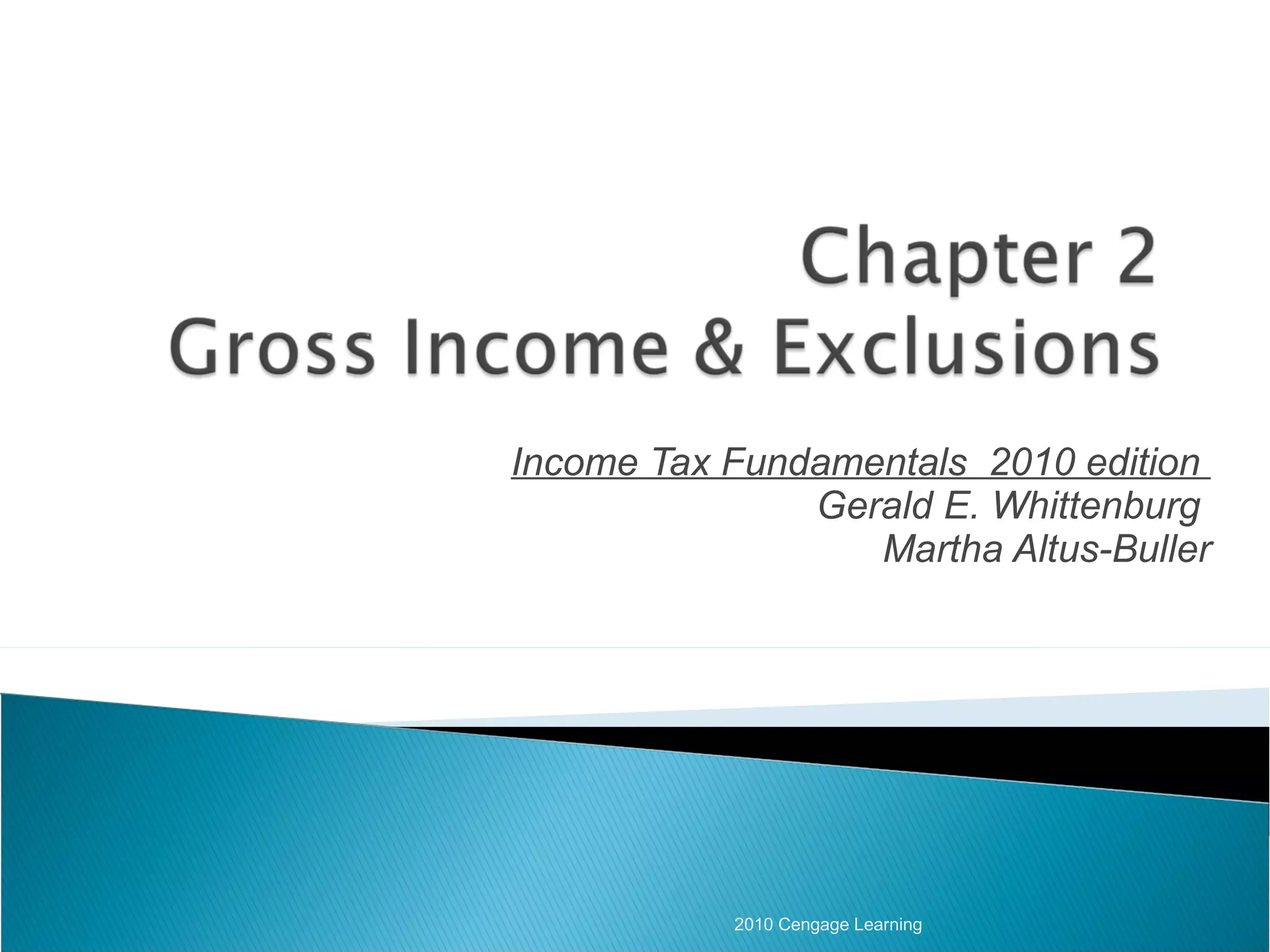 The document discusses various types of income and their tax treatment according to US tax law. It provides examples to illustrate how to calculate gross income for an individual based on different income categories including wages, bonuses, investment income, partnership losses, and rental income. It also summarizes tax treatment of other items such as alimony, annuities, life insurance payouts, and prizes or awards.