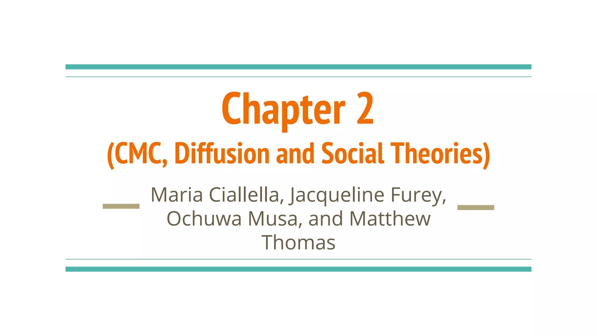 This document discusses key concepts related to computer-mediated communication (CMC) and social theories, including: