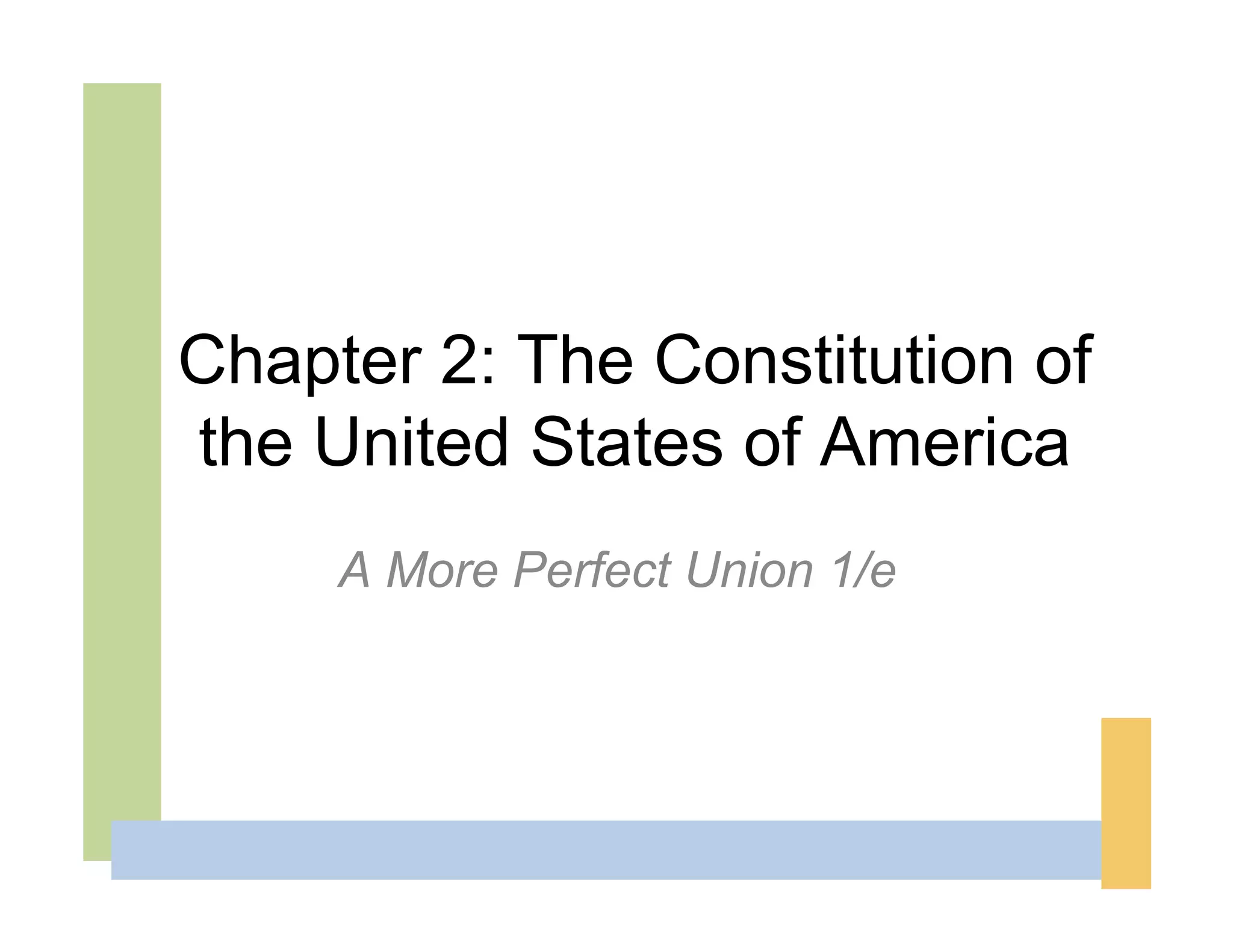The document provides an overview of the Constitution of the United States. It discusses that the Constitution establishes the mission, foundational structures, and essential processes of the national government. This includes separating powers among the legislative, executive, and judicial branches with integrated checks and balances. It also establishes the federal system and processes for selecting officials and amending the Constitution.