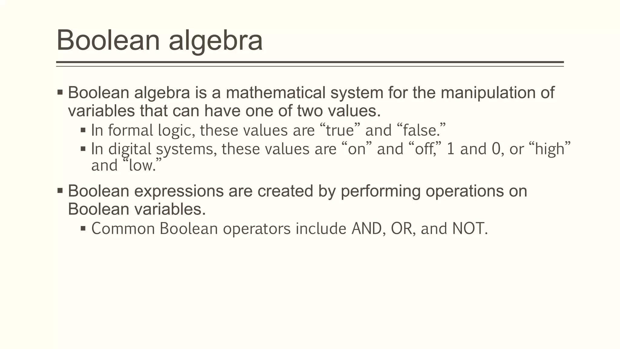 This document discusses Boolean algebra and logic gates. It defines Boolean algebra as a mathematical system using two values, typically true/false or 1/0. Boolean expressions are created using common operators like AND, OR, and NOT. Truth tables define the outputs of these operators. Logic gates are physical implementations of Boolean operators, including AND, OR, NAND, and NOR gates. Laws like De Morgan's theorem and the properties of universal gates like NAND and NOR are also covered.